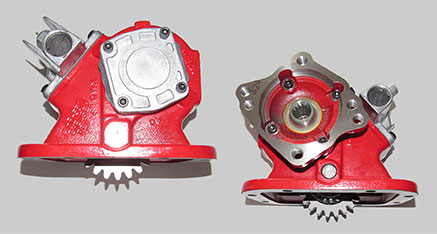 The shifter has dual levers for shift cables to operate the pump and power take off.