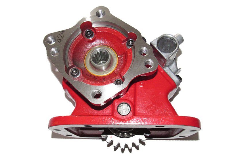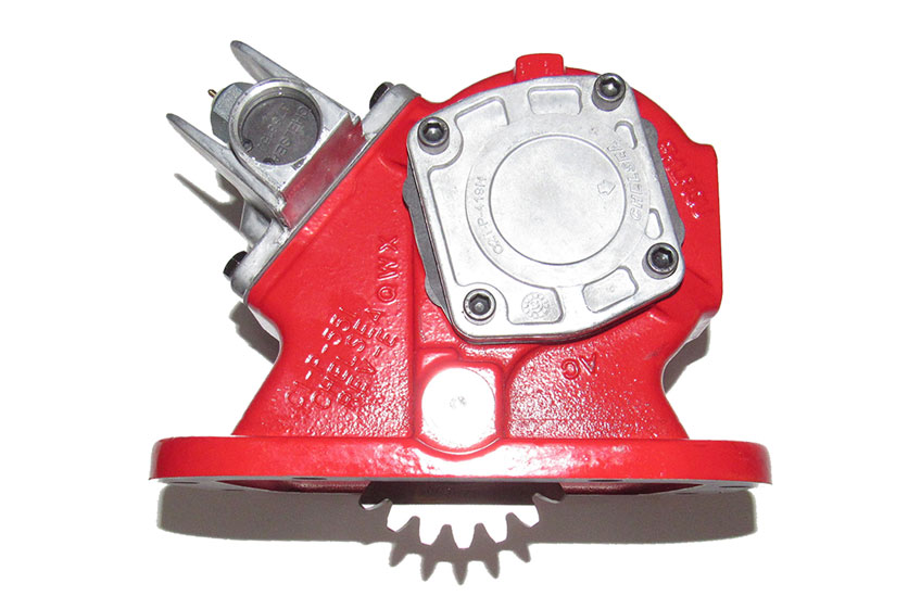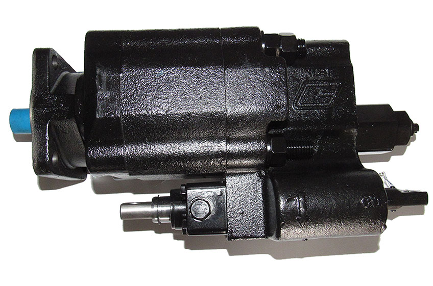 Hydraulic direct mount pump with counter clockwise rotation. Usually used on larger trucks with bodies 12 ft. and longer. 48 gallons per minute at 1,800 rpm's, 2 or 3 line hookup installation with relief valve to protect pump and cylinder. Approximate weight of 76 pounds.